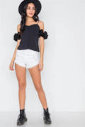 Black Ruffle Sleeve Cold Shoulder Cami Top
