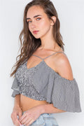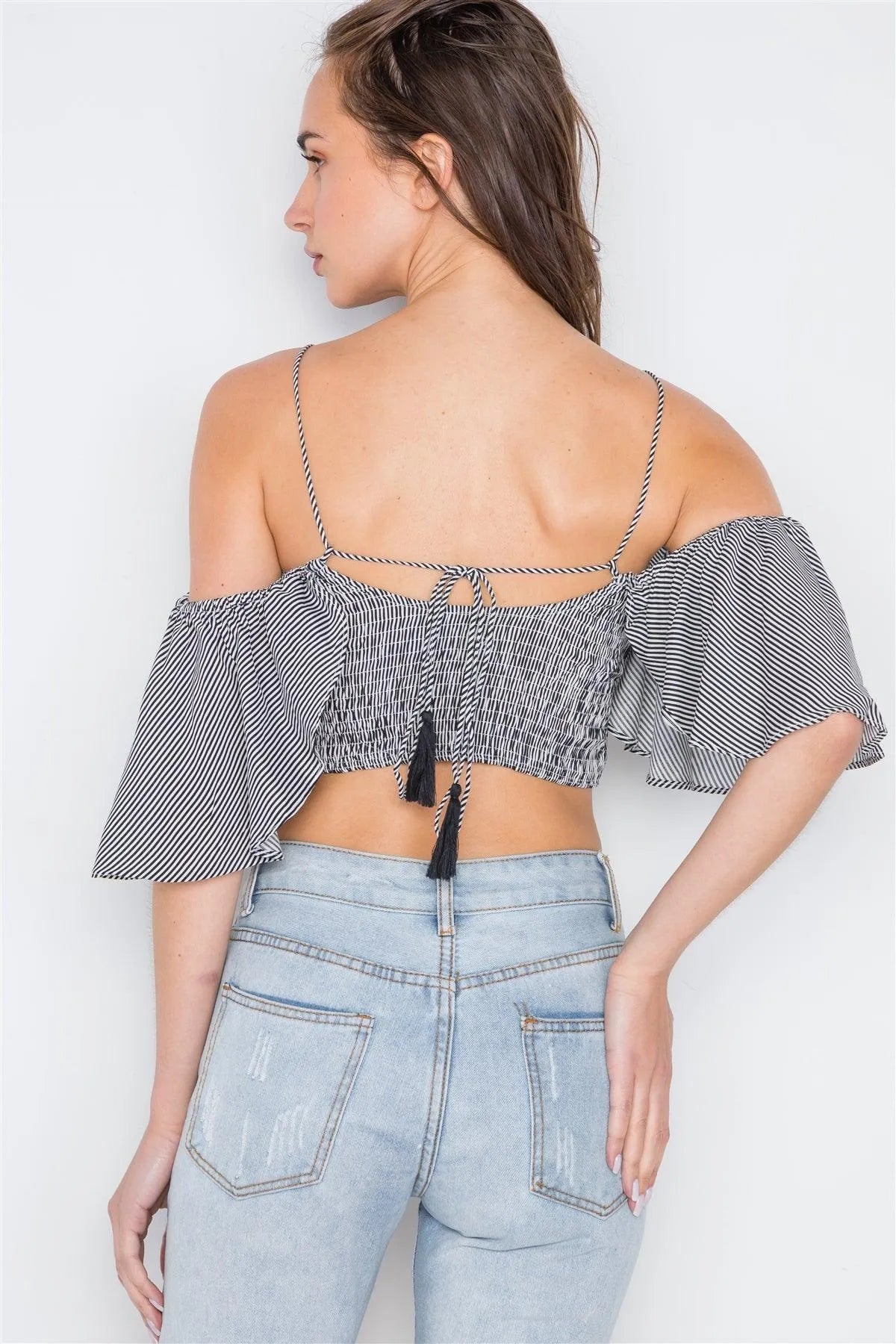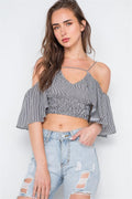 Black Striped Smocked Off-Shoulder Crop Top