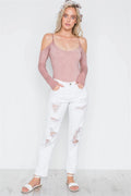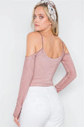 Pink Bodycon Cold Shoulder Cami Bodysuit