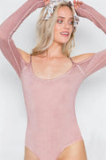 Bodysuit features: cami straps, cold shoulder, long sleeves, cheeky bottom, snap button closure Model is 5'9" and wearing small (Waist: 25", Bust: 32B", Hips: 35.5")Small Size Item Measurements: Length: 27", Bust: 26", Sleeves: 18" True to sizeAvailable in Charcoal