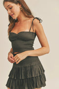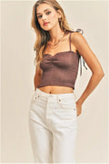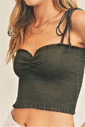 Smocked Bustier Sweetheart Neck Tie-Strap Cami Top