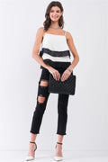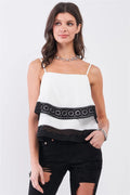 White & Black Laser-Cut Hem Layered Square Neck Cami Top