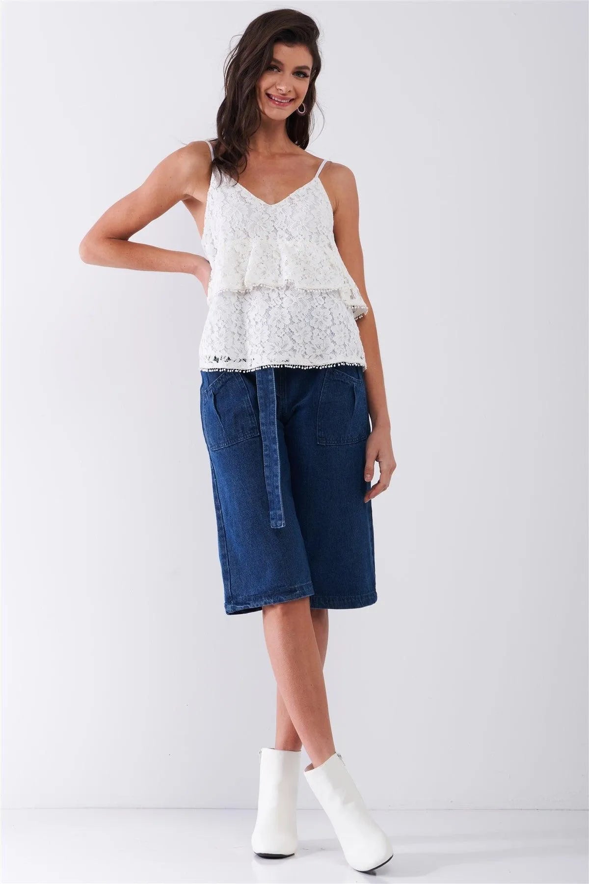 White Floral Crochet V-Neck Relaxed Cami Top